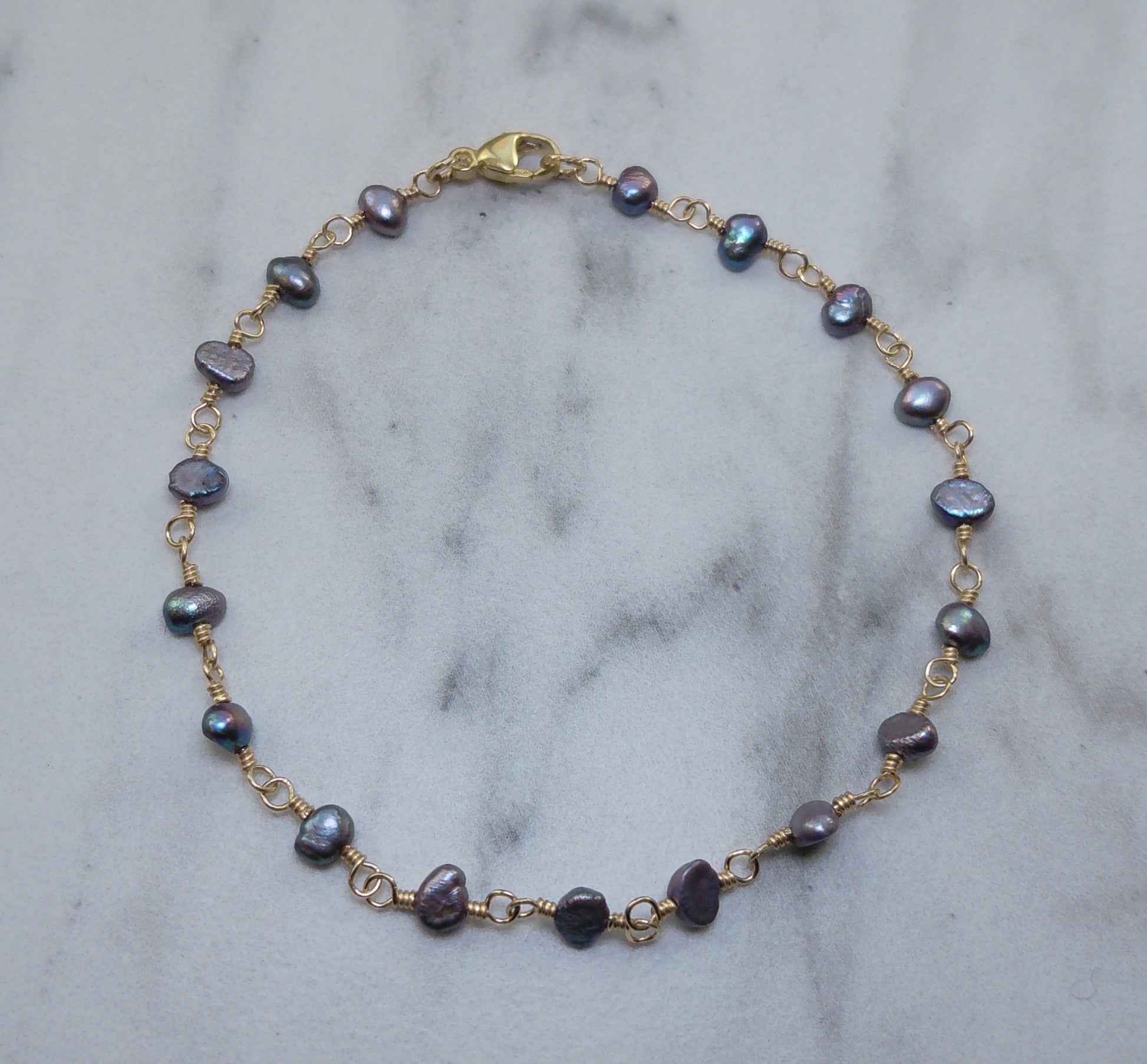 A gorgeous dainty bracelet featuring delicate design elements that are elegant and versatile. Handmade and wire-wrapped with love.