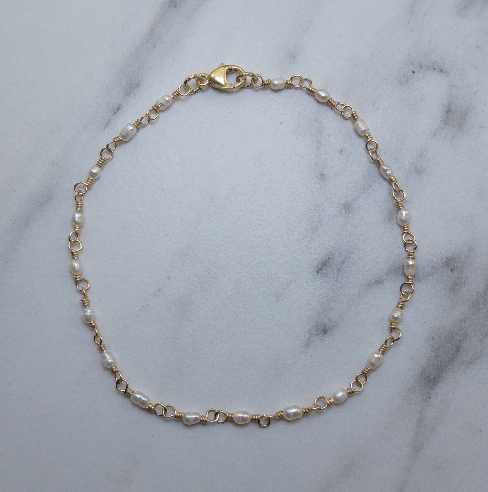 A gorgeous dainty bracelet featuring delicate design elements that are elegant and versatile. Handmade and wire-wrapped with love.