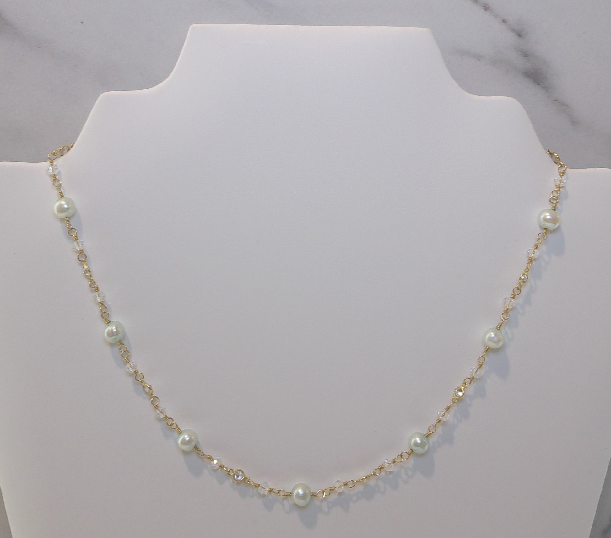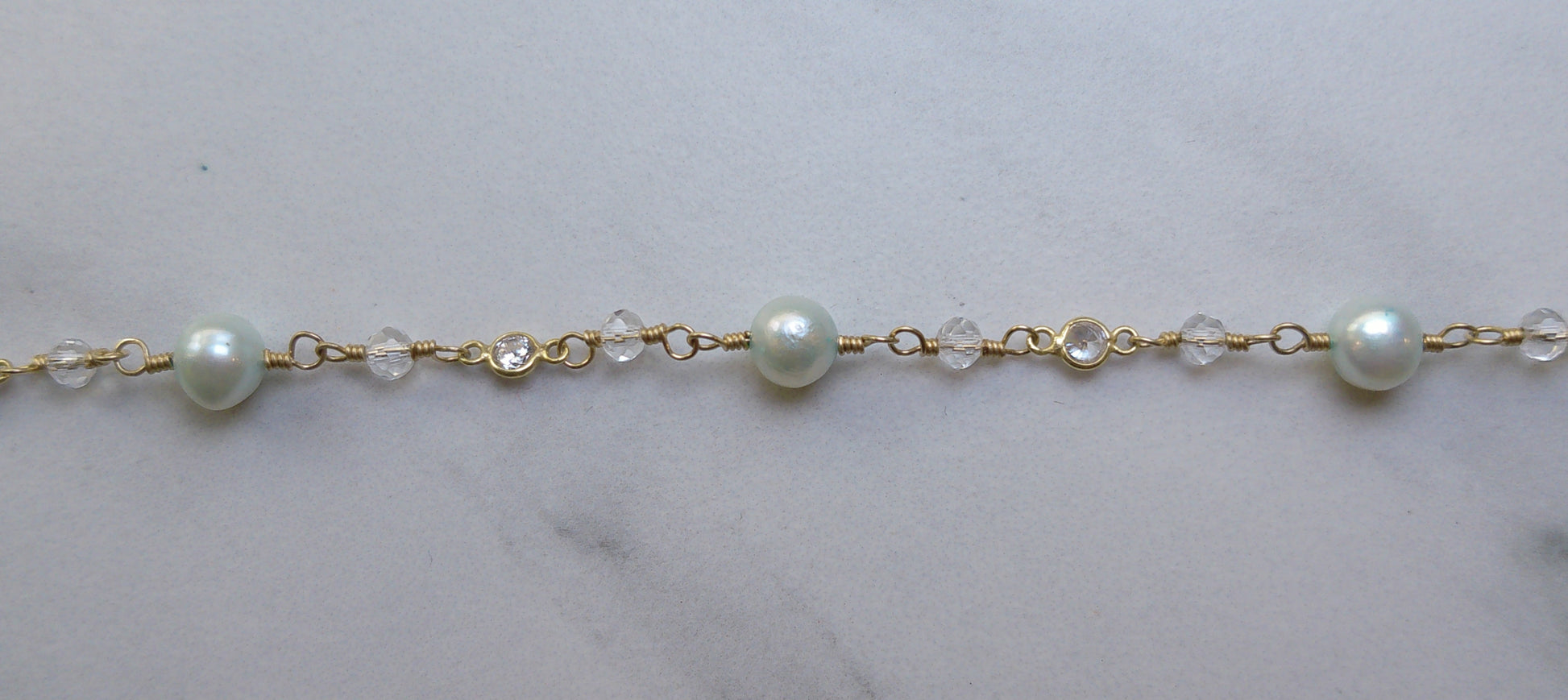 - Aqua Freshwater Pearls, Crystal Beads & 3mm CZ Bezel Connectors